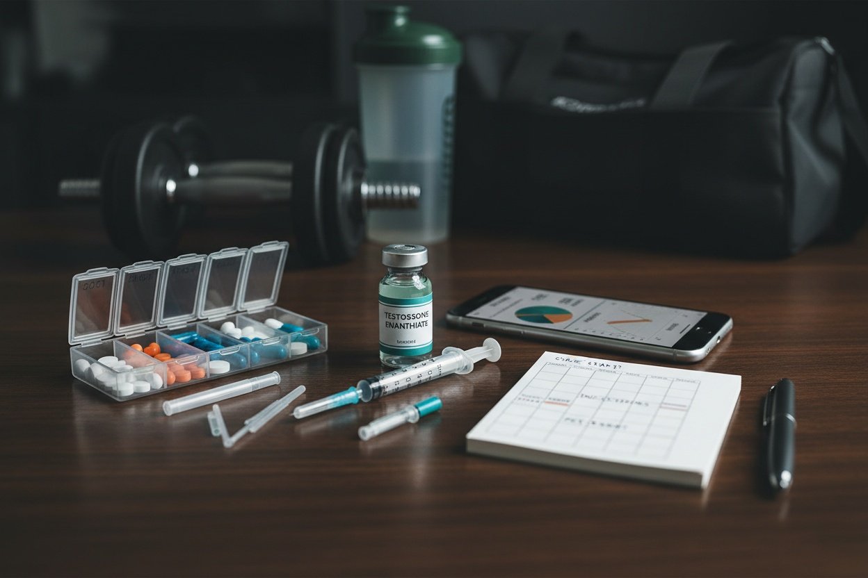 Din sista testosteroninjekt av enantat är helt eliminerad från kroppen efter cirka 3-4 veckor. Du bör starta PCT mellan vecka 1-2 efter din sista injekt. Att vänta för länge gör att din kropp befinner sig i ett hormonellt vakuum längre än nödvändigt, vilket ökar muskelförlusten. En praktisk timeline är: vecka 12 sista testosteroninjektionen, vecka 13-14 påbörja PCT, vecka 17-18 slutför PCT, vecka 18+ vänta 4-6 veckor innan nästa kur för fullständig recovery.